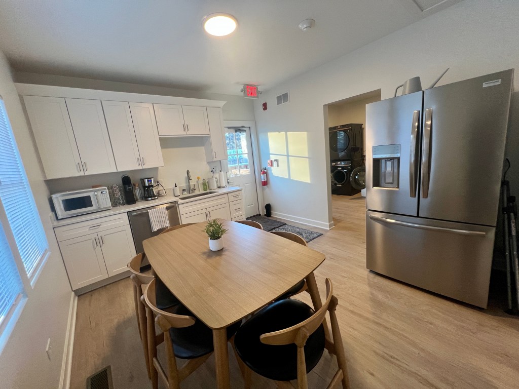 A Private kitchen space that is separate from the salon area so that you can take a break and eat/doom-scroll in peace.